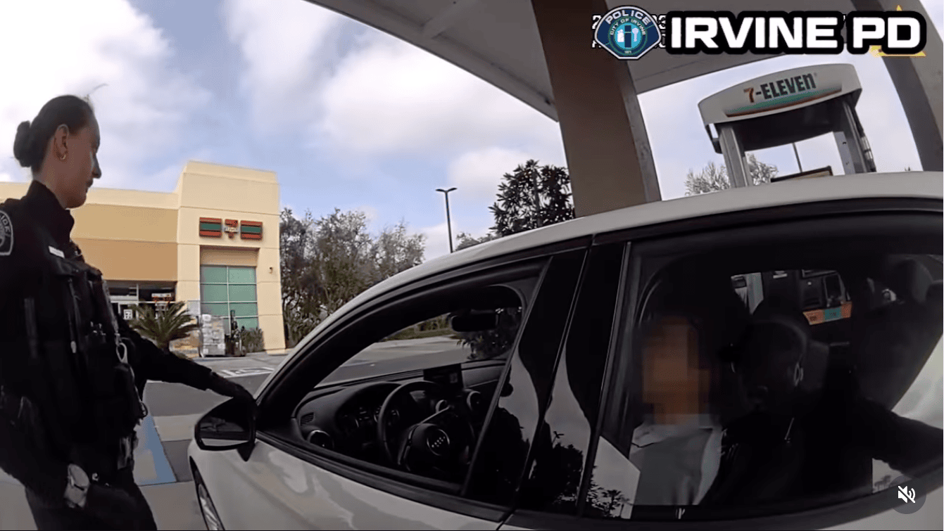 The incident unfolded at a gas station in Irvine, where the man, driving an Audi, demanded free gas.